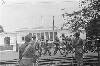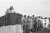 Het defilé wordt afgenomen voor het het paleis van de luitenant-gouverneur-generaal H.J. van Mook