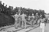 Nederlandse militairen bij een ambulante verkoper, een Kaki Lima, die drank verkoopt