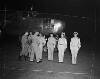 luitenant-generaal Spoor wordt voorgesteld aan de vliegtuigbemanning op vliegveld Kemajoraan