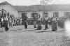 Sergeant F. Timotheus (links) salueert. Rechts (saluerend) de commandant Infanterie V majoor A. van Santen