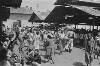 Kledinguitreiking door het Rode Kruis in Kalibedje bij Salatiga kinderen wachten