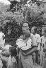 Salatiga: Bezoek buitenlandse militaire waarnemers aan Salatigasector. Ook de arbeid van het Nederlandse Rode Kruis in deze gebieden had de aandacht van het buitenlands militair gezelschap, bestaande uit Servais, Morizon en Sands. Zij zien toe bij de kledinguitreiking in kampong Getasan nabij Kopeng.