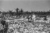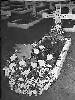 Begrafenis generaal Spoor op Ereveld Menteng Pulo de weduwe, mevrouw M. Spoor-Dijkema en haar zwager dhr. A. Spoor, haar neef N. Spoor, mevr. Kiës en generaal Engles bij het graf aan het einde van de uitvaart