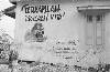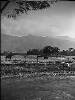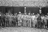Salatiga: Bezoek buitenlandse militaire waarnemers aan Salatigasector. Het gezelschap, bestaande uit Morizon, Servais en Sands bij het door de TNI verwoeste hotel Kopeng