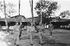 Bezoek aan Medan. Generaal Kruls loopt over een binnenplaats, in gezelschap van enkele officieren