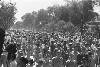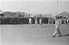Overdracht van het commando over het vliegveld Kemajoran door de RAF aan het Nederlandse leger. Generaal-majoor E.T. Kengen, commandant Militaire Luchtvaart KNIL ineemt het defilé af
