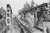 Het houten casco van een huis is weer opgebouwd in een straat waar verwoeste huizen of winkels (van Chinezen?) staan