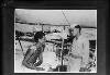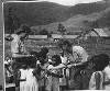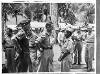 bestuursambtenaren van het NICA en militairen lopen door een dorp (in de Molukken?