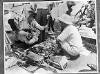 Officiëel hijsen van de Nederlandse en Australische vlag op Boeroe. Majoor J. Arnott, luitenant-commmandeur Whitebrook en luitenant Zegers de Beyl van het NICA groeten beide vlaggen te Kamlea