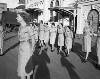 Bijschrift: "De medische hulp aan de Indonesische bevolking in Batavia. Voor de kinderen is een schooltje ingericht; enkele maanden terug lagen deze kinderen nog langs de wegen in Batavia. De monter gezichtjes bij de zangles spreken thans voor zichzelf"