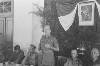 Installatie van de regering van de deelstaat Oost-Borneo. Het jongste lid van de Federale interim-regering Pangeran Kartanegara (staatssecretaris voor zelfbestuurszaken) beantwoordt de installatierede, naast hem Van Deinse (Scheepvaart) en ir. Warner (verkeer)