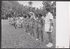 De band van Hr. Ms. torpedoobootjager "Piet Hein" tijdens het traditionele "Oranjebal"in de "Jachtclub"te Hollandia t.g.v. de verjaardag van H.M Koningin Juliana
