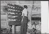 De arts A. Wink geeft anatomie aan klasse 1 en maakt daarbij gebruik van het skelet, dat kortgeleden geschonken werd door Simavi