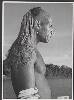 Asmatter met haarversiering, vervaardigd van jobstranengras
