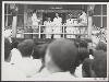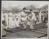 De 8 Indonesische infiltranten en hun gids worden de zaal van het de Raad van Justitie te Hollandia binnengeleid