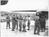 De heer N. Makkes, directeur Binnenlandse Zaken doet de "party" uitgeleid, die in de Baliem de mogelijkheid voor de aanleg van een vliegveld zal onderzoeken. Vlnr.: de adjunct-hoofdcommissaris der Algemene Politie, H.J.W.B. van der Lely; de korpscommandant der Algemene Politie, R.R. van Ravenswaay Claasen; directeur Binnenlandse Zaken, N. Makkes; assistent-resident en Rector van de Opleidingsschool voor de Bestuurs- en Administratieve dienst, dr. J.V. de Bruyn en de practijk-ingenieur W.A. van Damme