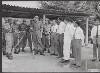 Bij de aankomst op het vliegveld Sentani worden de Nederlandse autoriteiten aan minister Casey voorgesteld; de foto toon...