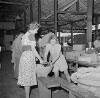 Vrouwen kleden kinderen aan in het Adek-kamp in Batavia