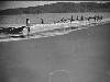 Poerwokerto: Op 9 December werd het spoorwegtraject Tjilatjap-Meloewoeng weer geopend. Vele militaire en burgerlijke autoriteiten maakten deze eerste rit mee. De basiscommandant van Tjilatjap, Overste v.Vos, in gesprek met de resident Stok uit Poerwokerto en de Ir. v. Gessel van s.s. op een van de tussenstations.