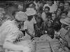 De Nederlandse troepen in Solo. De militairen gevoelen zich volkomen op hun gemak temidden van de bevolking.
