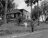 Soekarno en Agus Salim in ballingschap .Staande voor de Villa Marihat aan het Tobameer nabij Prapat