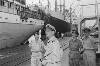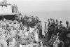 Demobiliserenden naar Nederland. Achterblijvers brengen een laatste groet aan hun vertrekkende makkers