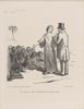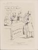 Spotprent over de uitgifte van cultuurcontracten in Nederlands-Indië. Minister van Koloniën Jan Jacob Rochussen als winkelier en Baron van Hoëvell met masker als klant. Plaat verschenen bij het weekblad De Nederlandsche Spectator, nr. 20, 19 mei 1860.