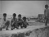 Het oorlogsschip Brielle op de Maas voor Rotterdam