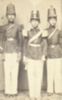 Drie Javaanse kinderen in militair tenue op Java.