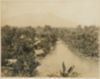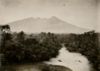 Rivier achter Hotel Bellevue te Buitenzorg, met op de achtergrond de Salak.
