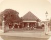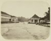 De banketbakkerij Leroux & Co (tweede van links) en andere winkels in Rijswijk te Batavia.