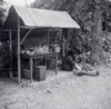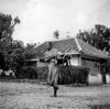 "Vernieling SS werkplaats in Madioen, begin maart 1942. (mej. Perquin)." Deze foto is gemaakt door Jeanne Perquin (katholieke onderwijzeres op Java). NI 7018