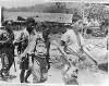 Japanse krijgsgevangenen aan het werk onder toezicht van voormalige geallieerde krijgsgevangenen.