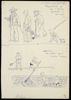 Een deel van een plakboek bestaande uit 36 tekeningen, twee briefkaarten, vier krantenknipsels, een voor- en achterblad ...