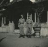 Majoor Heiligers en de zojuist gedecoreerde Henk Kok voor het gebouw van De Stoottroepclub.