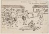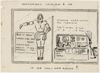 Tekening in pen en potlood van een kampinspectie. De inspectie wordt in razende vaart voltrokken door een Japanner en een Nederlander op een motor. De Nederlander is kampleider C.H.V. de Villeneuve.