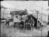 Een zwart-wit glasnegatief van Bonieren waarvan twee te paard. Achter hen loopt een Indonesische militair van het Nederlands gezag.