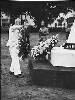 Een deel van een katoenen deken met roze banen waarop is geborduurd: "Ten Houten. 21646". De bovenkant is met roze garen afgebiesd. Deze deken behoorde toe aan dr. A. ten Houten-Pannekoek.