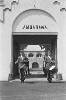 Twee ronde uniformknopen van koper of messing met daarop een reliëf van een gekroonde W.