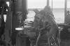Vrouwenblouse van zalmkleurig synthetisch materiaal met machinaal borduursel aan de hals en onderkant voor, als ook op de mouwkop. Ritssluiting achter, moderne versie met schoudervulling en mouwkoppen; 3/4 lengte eveneens modern. Feestdracht voor jonge vrouwen uit de middenklasse.