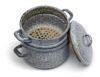 Een grijs-wit geëmailleerde rijststomer (panci kukusan) uit vier delen.