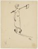 Een afgedrukte tekening met de afbeelding van twee sip kijkende vrouwen die tegenover elkaar staan.