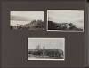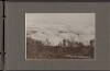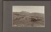 Een kleurpotloodtekening van een berglandschap met op een plateau huizen.