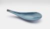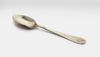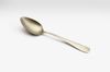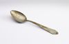 Tinnen dessertlepel van het merk Alpacca. De steel is versierd.