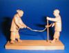 Beeldje van geelwit aardewerk, zwart geglazuurd, voorstellende de Taoïstische onsterfelijke Li Tieguai, een magere man leunende op een stok en met een kalebaskruik die steunt op zijn opgetrokken knie.