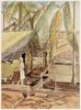 Een aquarel van groep vrouwen die in een tuin werken. Rechts in het midden een verrijdbaar apparaat waar stoom uitkomt. Daarboven een katrol. Op de voorgrond enige vrouwen bij grote vaten. De aquarel is niet af.