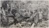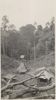 Sago kloppen in de sagopalmbast. Januari '37. de voorbereiding der boring op Selawati. (ten N.W. v/d Vogelkop)
