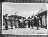 Zwart-wit diapositief met de afbeelding van een militaire leider, met om hem heen een groep militairen, die een plan bespreekt. De militairen zijn in veldtenue met ranselzak, geweer, veldhoed. De afbeelding op dit diapositief werd gemaakt voor de publicatie "Indië in Beeld" (1911) en een reeks schoolplaten over Java en Sumatra, uitgegeven in 1912. Beiden waren bedoeld om meer bekendheid te geven aan Nederlands-Indië, 'die mooie, rijke Koloniën, de grootste bron van Neerlands welvaart.' Bij de publicatie en de schoolplaten zijn toelichtende teksten geschreven door een aantal hoogleraren en deskundigen uit die tijd.' De toelichtende tekst bij deze afbeelding is van Prof. dr. A.W. Nieuwenhuis: "Inleiding op Europeesch bestuur, leger en vloot Plaat 123 Amboneesche Militairen in marschtenue. De leiding der regeeringsaangelegenheden in Nederlandsch-Indië berust bij de Indische Regeering, bestaande uit den Gouverneur-Generaal en den Raad van Nederlandsch-Indië. Om in die gevallen waarin het beleid of de invloed dezer regeering binnenlands tekortschieten of wanneer de koloniëen door een buitenlandsche macht worden aangevallen, haar te steunen, is de aanwezigheid van een strijdmacht te land en te water noodzakelijk. In onze staatsinrichting bezit de Koningin de uitvoerende en een groot deel der wetgevende macht over de Oost-Indische koloniën. Op ander gebied der koloniale wetgeving deelt H.M. deze met de Staten-Generaal, die verder door hunnen invloed op het vaststellen der begrooting van Nederlandsch-Indië hunne wenschen kunnen doen gelden bij die maatregelen, waaraan geldelijke gevolgen verbonden zijn. In Nederland oefent de Koningin hare macht over de koloniën uit door haren Minister van Koloniën, die door zijne medeonderteekening van alle regeeringsbesluiten van zijne medewerking getuigt en de verantwoordelijkheid daarvoor op zich neemt. In Indië voert de Gouverneur-Generaal het bestuur in naam der Koningin; dit omvat vooral de uitvoerende macht; een klein gedeelte der wetgevende macht bezit hij daarbij evenzoo. Hij staat diententengevolge onder het Opperbestuur in Nederland en is in Indië gebonden door een meer of minder sterke samenwerking met den Raad van Nederlandsch-Indië. Het bestuur van den Gouverneur-Generaal lost zich weder op vooreerst in de zorg voor de tenuitvoerlegging der bestaande wettelijke voorschriften en verder voor de afkonding van nieuwe in Indië door plaatsing in het Staatsblad, van Ned. Indië, waardoor zij in werking treden. Hij is opperbevelhebber der in Nederlandsch-Indië aanwezige land- en zeemacht en gerechtigd aan inlandsche vorsten den oorlog te verklaren; alles trouwens met inachtneming der bevelen van de Koningin. In deze uitgebreide en moeilijke taak wordt hij bijgestaan door een uitgebreid corps ambtenaren, door het leger en de vloot en door de Secretarie, een bureau, waar men onder leiding van zijnen Algemeenen Secretaris de bij hem inkomende en van hem uitgaande stukken bewerkt. Als toeziend lichaam op het financieel beheer fungeert de Algemeene Rekenkamer. De Gouverneur-Generaal benoemt alle ambtenaren, behalve de leden van deze, die van den Raad Ned. Indië, de Generaal-Officieren en den Commandant van de Zeemacht, die door de Koningin worden aangesteld. De bestuurstaak onder den Gouverneur-Generaal wordt in Indië verdeeld tusschen negen departementen van algemeen bestuur, dat van Binnenlandsch-Bestuur, - van Burgerlijke Openbare Werken, - van Financiën, - van Gouvernementsbedrijven, - van Justitie, - van Landbouw, Handel en Nijverheid, - van Onderwijs en Eeredienst, - van Oorlog en - van Marine, alle, onder een directeur, den Commandant Leger of dien van de Zeemacht staande. Het Binnenlandsch- of Gewestelijk Bestuur voert bet politiek bestuur meer onmiddellijk. Nederlandsch-Indië is daarvoor verdeeld in gewesten, die onder een gouverneur, resident of assistent-resident (alleen Billiton) staan. Slechts de hoofden van gewestelijk bestuur van Atjeh- en Onderhoorigheden, van Soematra's Westkust en van Celebes en Onderhoorigheden hebben den rang van gouverneur. Onder die hoofden staan assistent-residenten, controleurs en aspirant-controleurs. Van grooten invloed op de werkzaamheden der hoofden van gewestelijk bestuur is de al of niet aanwezigheid van inlandsche rijken met zelfbestuur. In de Buitenbezittingen bestaan namelijk nog vele inlandsche rijken, welker vorsten groote macht in hun gebied behouden hebben, al zijn zij verplicht geworden rechtspleging, of in- en uitvoerrechten, of andere rechten, dikwijls tegen schadeloosstelling, aan het Indisch Gouvernement af te staan. Op Java vindt men vier zulke rijken, alleen nog in de Vorstenlanden. Het overige gebied wordt direct bestuurd. Eenigszins een bijzonderen toestand bezitten de „particuliere landerijen’ op Java, die vooral in West-Java in het begin der vorige eeuw aan particulieren zijn verkocht. Hier oefenen de bezittende personen of lichamen enkele heerlijke rechten uit als het benoemen van dorpshoofden, eenige rechtsmacht, het heffen van belastingen enz. Als schakel tusschen het Europeesch bestuur en de inlandsche bevolking bestaat in de direct bestuurde streken het Inlandsch Bestuur, eene organisatie, die zich uit de oorspronkelijke inlandsche toestanden heeft ontwikkeld. Het berust op eene verdeeling van het gebied in regentschappen, aan het hoofd waarvan inlandsche regenten, veelal land-genooten of afstammelingen van vroegere vorsten geplaatst zijn (zie plaat 15). Zij worden door den Gouverneur-Generaal benoemd of ontslagen op voordracht van den resident, hebben een inkomen van de regeering van ƒ 12000.- 's jaars of wat hooger, aanspraak op ƒ 2400.- wegens gemis van heerendiensten, ontvangen cultuurprocenten van aan de regeering geleverde koffie en worden in een landswoning (plaat 21) gehuisvest. Hun verhouding tot de Europeesche ambtenaren in het gewest is die van een jongeren tot een ouderen broeder. Een regent is de vertrouwde raadsman van het hoofd van gewestelijk bestuur,