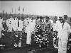 Batavia. 'A Dutch housewife on her way home from a shopping expedition stops to bandage an Indonesian rebel who was wounded in a skirmish with Netherlands troops. Disregarding the fact that he and his comrades, incited by Japanese propaganda and armed by the japanese, have caused so much bloodshed amongst the defenceless Dutch women and children internees, she suffered too much herself during three and a half years of ...