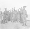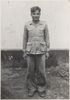Krijgsgevangene, met touw om de handen gebonden aan een gevangene naast hem, kijkt angstig Opschrift: "Brits Indiër, gevangen bij zuiveringsactie bij Poering", 13 november 1947, Nederlands Indië / Indonesië Onderdeel collectie foto's KNIL soldaat uit Groesbeek